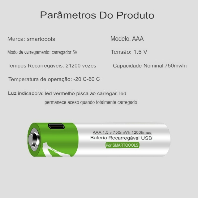 Pode ser recarregada inúmeras vezes, o que é mais econômico e sustentável do que continuar a comprar pilhas descartáveis. Além disso, com a disponibilidade de portas USB em muitos dispositivos, como computadores, televisores e carregadores de celular, é fácil encontrar uma fonte de energia para recarregar a bateria